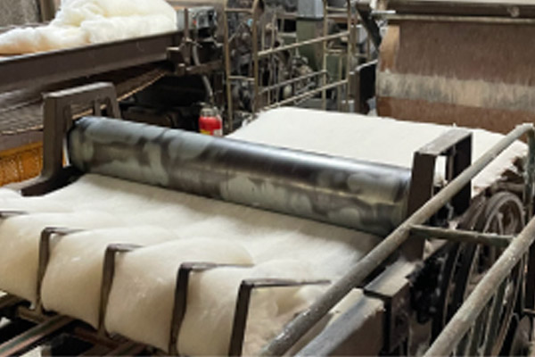 昭和の時代から現役で活躍するカード綿打ち機械で原綿から製綿しています。